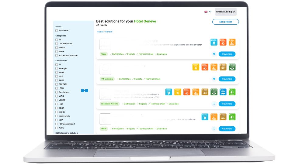 Discover a selection of over 100 sustainable technologies. From CO₂ reduction to water management, find providers relevant to your region.